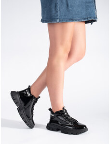 Boto Lakované dámske členkové topánky na platforme a klinovom opätku čierne Calvessa