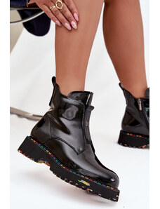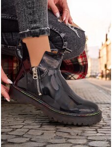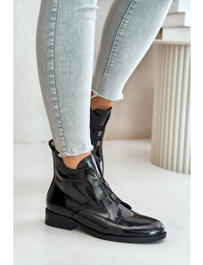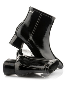 Patent leather ankle boots with zipper insulated flat heel S.Barski black