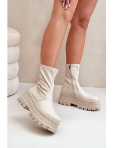 Boto FB3 Čižmy Na Masívnej Platforme Svetlo Béžové Florinara
