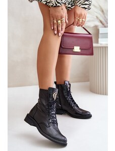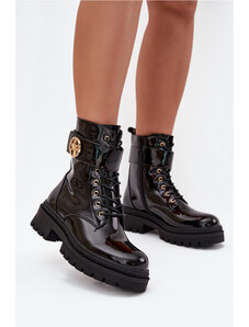 Boto Lakovane pracovné čižmy dámske so zlatým detailom zateplené čierne Fiorena
