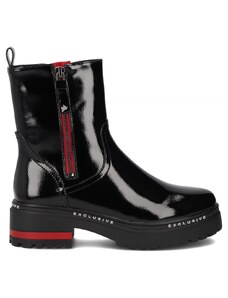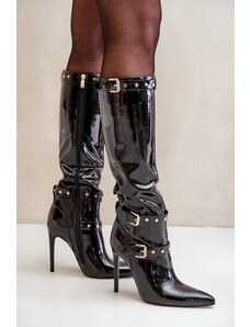 Boto FB3 Ozdobené čižmy z lakovanej eko kože na ihlovom podpätku čierne