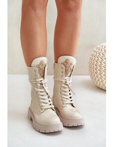 Boto PS1 Lakovane Zateplené Pracovné Čižmy S Ozdobou Béžové Kelilea