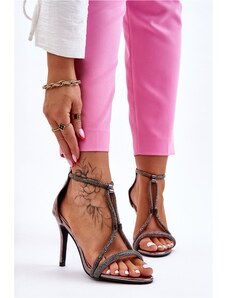 S. BARSKI Elegantné sandále na päte so striebornými kamienkami Jenesis