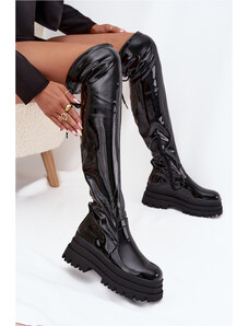 Lakované čižmy Dorelia D8257 black - Sweet Shoes