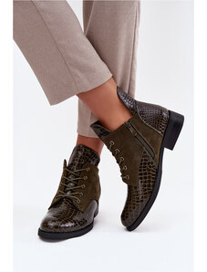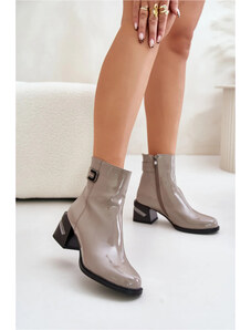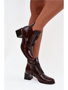 Kožené lakované členkové topánky na podpätku s ozdobným detailom zateplené Zazoo