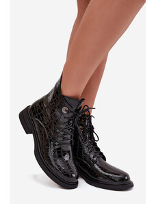 BASIC Čierne workery s imitáciou krokodílej kože TENTIS ZY0442