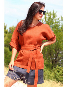 MladaModa Predĺžená blúzka model 8875 oranžová