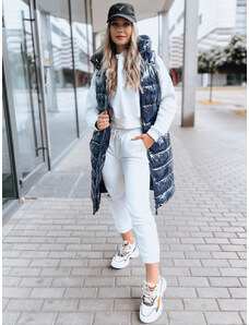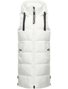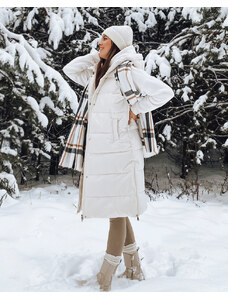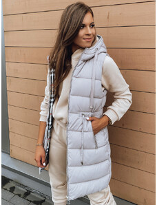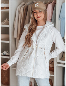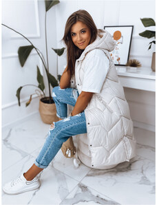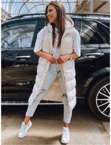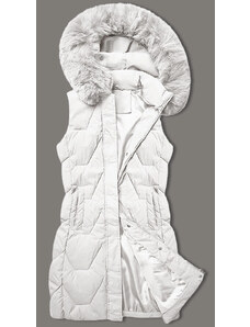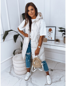 Biela dámska dlhá prešívaná vesta s kapucňou Dstreet TY3014