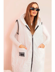 MladaModa Prešívaná oversize vesta s kapucňou a zipsom model 5393 biela