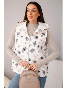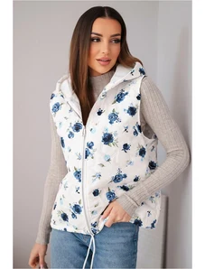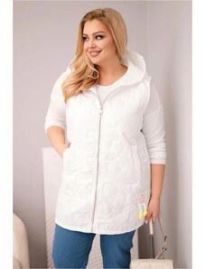 MladaModa Prešívaná vesta s kapucňou a ozdobným kvetinovým embosovaním model 5773 biela