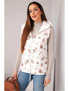 K-Fashion Dámska prešívaná vesta s kvetinovým vzorom s kapucňou Fango