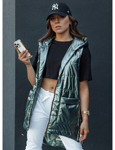 BASIC Tmavozelená lesklá prešívaná vesta s kapucňou JESS TY4454