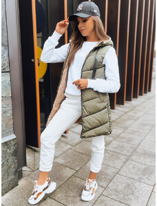 Perso Dámska khaki dlhá prešívaná vesta s kapucňou BLH 220050 F - Khaki