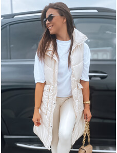 BASIC Béžová dámska dlhá prešívaná vesta bez kapucne SERKIS TY4525