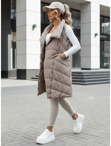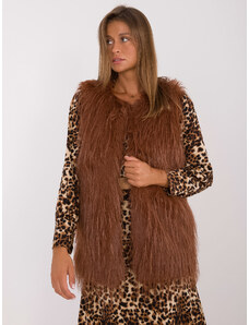 ITALY MODA Dámska hnedá dlhá kožušinková vesta so zipsom AT-KZ-2368-1.08-brown