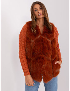 ITALY MODA Terakotová kožušinová vesta s vreckami AT-KZ-2375.00P-dark orange