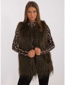 ITALY MODA Khaki kožúšková vesta AT-KZ-2349-1.79-khaki