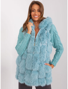 ITALY MODA Tyrkysová chlpatá kožúšková vesta AT-KZ-2368.00P-turquoise