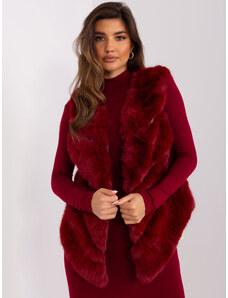 ITALY MODA Bordó midi kožušinová vesta AT-KZ-2368-1.13-bordo