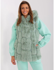ITALY MODA Svetlozelená kožušinová vesta AT-KZ-2349.00P-pistacio