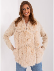 ITALY MODA Béžová kožušinová vesta s vreckami -AT-KZ-2375.00P-beige