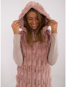 ITALY MODA Ružová midi kožúšková vesta s kapucňou Kamizelka-AT-KZ-2368-1.07-pink