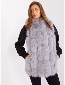 ITALY MODA Sivá chlpatá kožúšková vesta -AT-KZ-2368.00P-grey