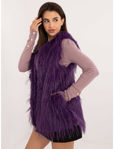 ITALY MODA Fialová dámska kožušinová vesta s vreckami AT-KZ-2349-1.50-violet