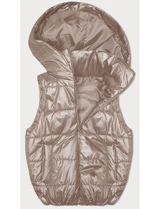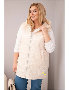 MladaModa Prešívaná oversize vesta s kapucňou a zipsom model 5393 svetlá béžová