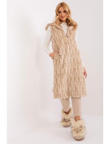 BASIC Béžová kožušinová vesta s kapucňou -TW-KZ-2116.48P-beige