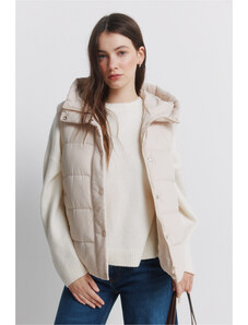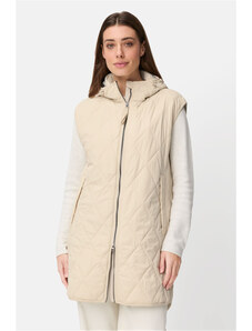 BASIC Béžová dámska prešívaná vesta s kapucňou TAMIRA TY4528