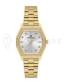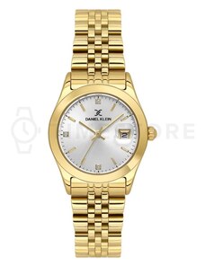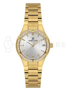Dámske hodinky DANIEL KLEIN Premium DK12550-2 - kovové hodinky v obľúbenej farbe žltého zlata. Ciferník vysadený sklenenými kamienkami krytý minerálnym sklíčkom. Vodotesnosť 30 m.