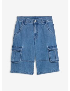 Bonprix Chlapčenské džínsové bermudy, strečové, prestaviteľný pás, Slim Fit, farba modrá