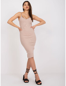 RUE PARIS Béžové rebrované bavlnené midišaty Emi -RV-SK-7687.30-beige