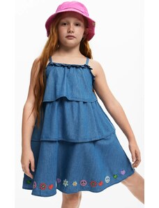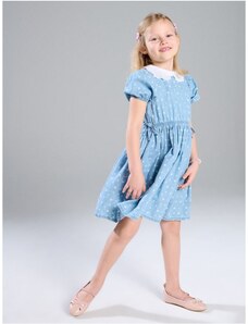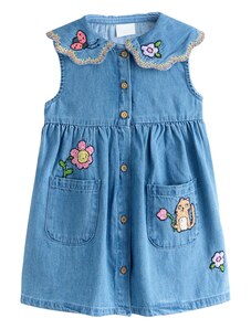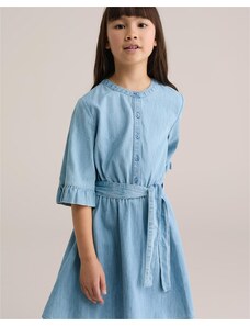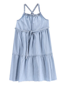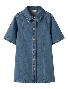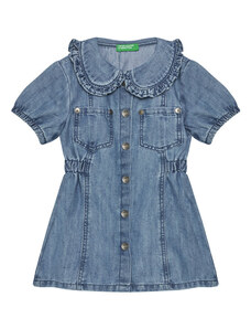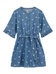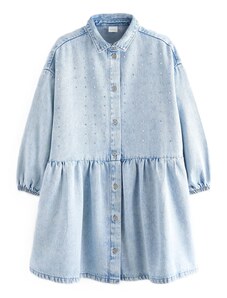 Sinsay - Džínsové šaty s naberanými rukávmi - modrá