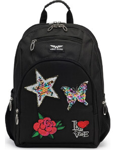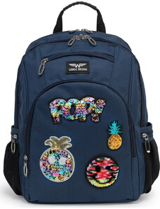 WINGS Tmavomodrý školský plecniak s aplikáciami