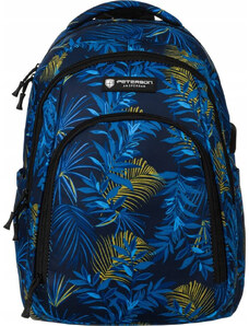 Peterson modrý školský batoh s rastlinnou potlačou a USB portom PTN 77711-6630 PRT-2