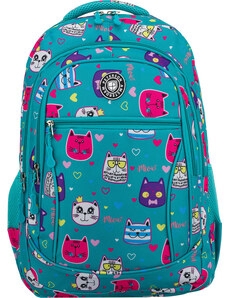 Peterson Tyrkysový školský plecniak s roztomilými mačičkami PTN BIEDRONKA