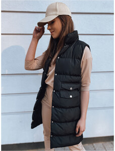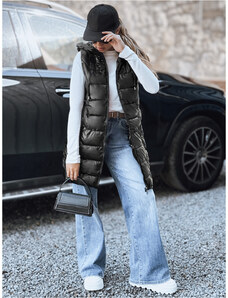 Čierna dámska dlhá prešívaná vesta s kapucňou Dstreet TY2980