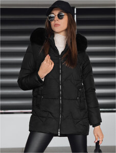BASIC Čierna dámska zimná bunda s kožúškom LUNAVI TY4667