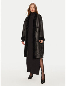 ErikaFashion Čierny faux fur dlhý kožušinový kabát KINKA