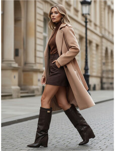 Dámske béžové čižmy ZY1137 Dizajn s vrúbkovaným zvrškom a úzkym členkovým podpätkom urýchľuje obúvanie a mäkký zvršok sa prispôsobí lýtku, čím si pri pohybe zachováva elegantnú líniu. Prečo by ste ho mali mať Úzky 5,5 cm podpätok - jemne predlžuje siluetu bez toho, aby sa obetovalo pohodlie. Vrchná časť s vrúbkovaním - dodáva štýlu ľahkosť a maskuje drobné nerovnosti lýtka. Slip-on štýl - rýchlo sa obúva a stabilne drží na nohe. Mäkká podšívka - zvyšuje pohodlie počas dňa. Protišmyková podrážka - zvyšuje istotu pri došľape na hladkom povrchu. Proporcie uprednostňujú kombinácie so šatami, sukňami a úzkymi nohavicami. Minimalistické šitie a čistý tvar uľahčujú zostavovanie elegantných súprav od kancelárie až po večerné vychádzky. Špecifikácie výrobku Zvršok: ekologická koža Podšívka: látka Stielka: textil Podrážka: plast Zapínanie: nasúvacie Zateplenie: žiadne Výška podpätku: 5,5 cm Výška zvršku: 36,5 cm Farba: béžová Často kladené otázky - Obuv ZY1137 K akému štýlu sa hodia topánky ZY1137? Tento model sa hodí k elegantným šatám aj ku každodenným kombináciám s džínsami alebo sukňami. Vďaka neutrálnej farbe ich ľahko zladíte s rôznymi prvkami svojho šatníka. Sú čižmy ZY1137 vhodné na celodenné nosenie? Áno, nízky kitten podpätok a mäkká podšívka zaručujú pohodlie v práci aj pri vychádzkach. Ako sa starať o čižmy z ekokože ZY1137? Čistite mäkkou handričkou a používajte jemný čistiaci prostriedok na ekokožu; sušte pri izbovej teplote, mimo dosahu zdrojov tepla.