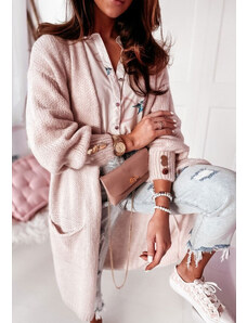 Dlhý oversize kardigan s prímesou vlny. Asymetrické sfarbenie mu dodáva svieži a dievčenský vzhľad. Má vrecká na prednej strane a sťahovaciu gumu v rukávoch a spodnej časti. Projekt by FASHIONWEEK MARTI&SIMON