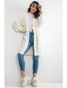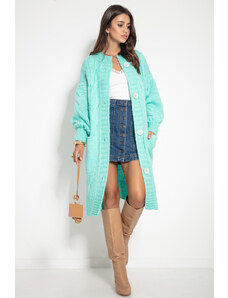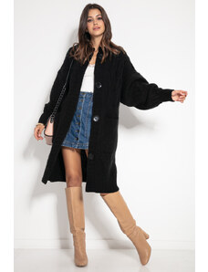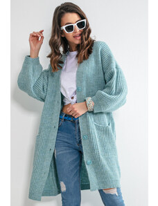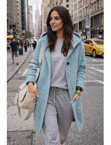 Dlhý kardigan s prímesou vlny je skvelým doplnkom každodenného stylingu. Kardigan sa zapína na dva gombíky a má kapucňu. Skvele bude vyzerať v kombinácii s legínami a tričkom. Je dostupný vo viacerých farebných variantoch.