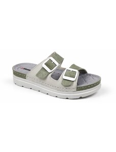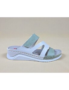 Dámska obuv s mäkkou výstelkou z nešmyklavej textílie antomicky tvarované. Pohodlné šľapky na doma alebo do práce. Na priehlavku sú pracky na suchý zips aby sa dalo nastaviť na ideálnu výšku priehlavku každej nohy.