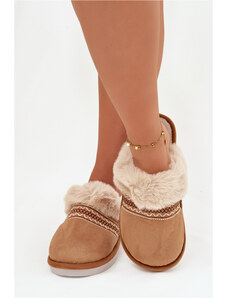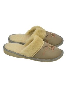 Boto Dámske papuče s kožušinou a výšivkou Camel Devianne