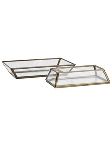 MADAM STOLTZ Sklenený podnos Clear / Aged brass – sada 2 ks