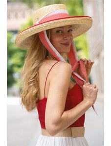 Fléchet - Since 1859 Dámsky letný slamený klobúk Fléchet s červenou mašľou