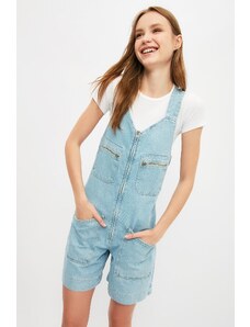Trendyol Blue Pocket Detailed Zipper Denim Overalls