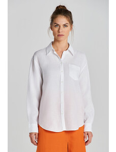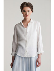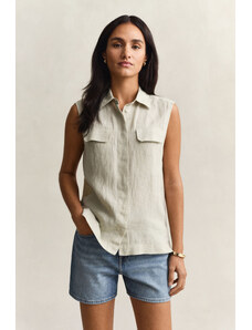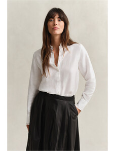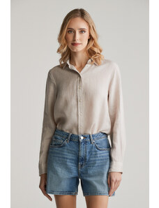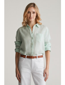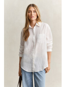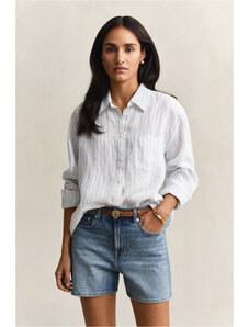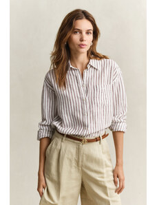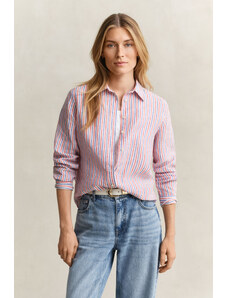 Dámska ľanová košeľa v obľúbenom pruhovanom vzore. Voľný strih s dlhým rukávom, našitým vreckom a zaokrúhleným spodným lemom dopĺňa zámik s pútkom na chrbte pre maximálnu voľnosť pohybu. Nechýba tonálne logo Gant vyšité na hrudi. 100% ľan v prémiovom spracovaní zaručuje dokonalú ľahkosť, priedušnosť a príjemný pocit počas nosenia. V letnom období určite oceníte aj mierne chladivý efekt tohto prírodného materiálu. Skvele kombinovateľný kúsok, ktorý štýlovo doladí Váš športovo-elegantný outfit.